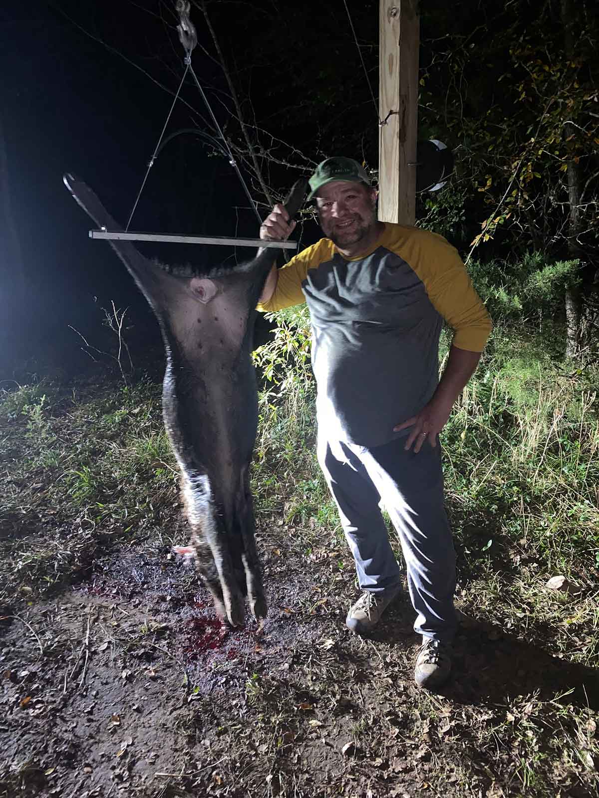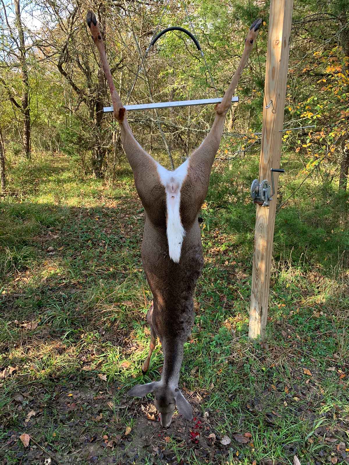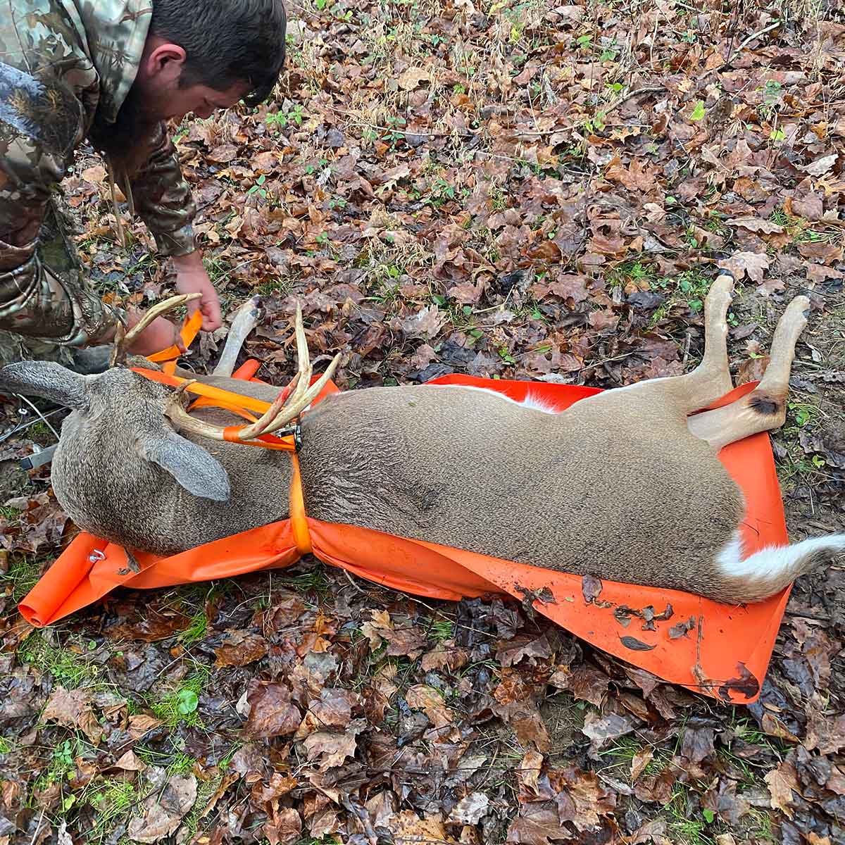 I purchased a drag-m-hang-m kit this year. I went hunting in Indiana and shot two deer and used the kit. By using the kit it was so easy to drag, and the gamble with handle made processing a breeze. I didn’t have to worry about dropping the meat while butchering. When done, I just cleaned the Matt and tiled it up, so it’s ready for next time. The Matt is durable and still new. I highly recommend this product.